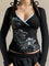 Retro-Style Plant Floral Slim-Fit Long Sleeve