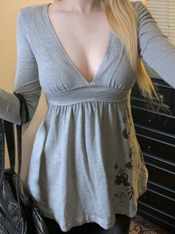 Square-Neck Loose-Fit T-Shirt Long Sleeve