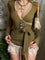 Cross V-Neck Tie-Up Fitted Long Sleeve